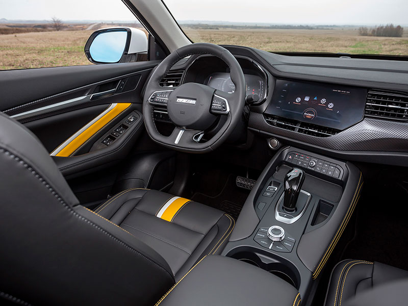 - Сиденья с отделкой искусственной кожей с вставкой желтого цвета